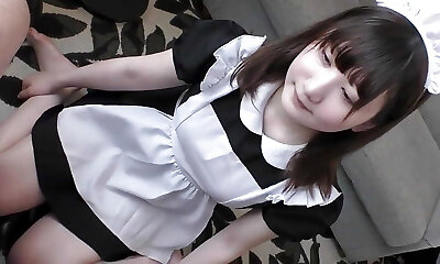 Uber-cute 18 year old dark-haired Japanese gets creampied in her naughty uniform and shaved pussy. There is also a blowjob. U