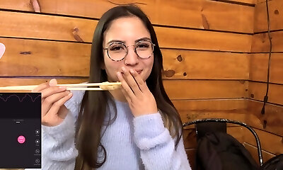 Nerdy babe from the Far East wants her jaws to be packed with cum