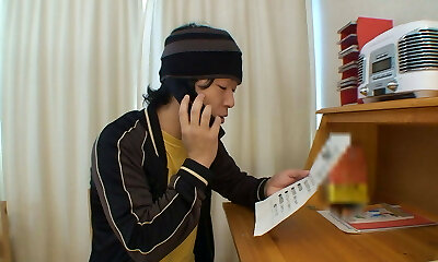 Nerdy japanese girl has cybersex with her bf on skype