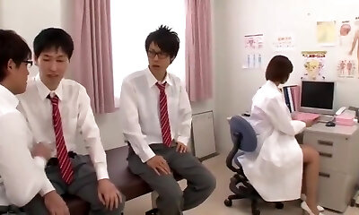 Japanese Brunette nurse Shino Aoi in the doctor's office in sucky-sucky activity uncensored.
