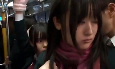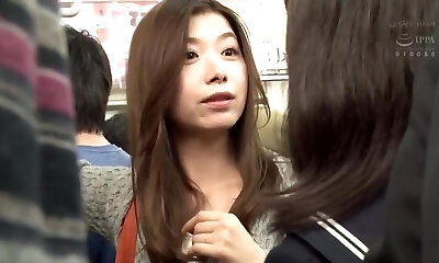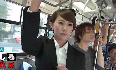 Busty, Japanese brunette is getting molested in a public buss, but she luvs it a lot