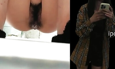 Japanese babes peeing golden piss in urinal Pov voyeur