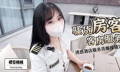 The cockslut housekeeper in room service!seduces the hotel waiter to have her pussy fucked and creampied sans a protection!