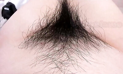 teasing fingering and masturbate hairy creamy dripping wet pussy close up with slime and dump climax