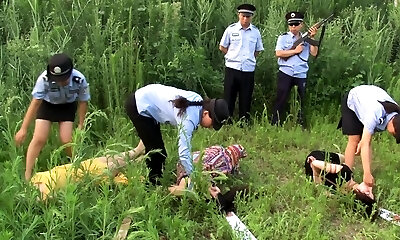 Kinky Asian women in prison camp with shaved pussy nailing